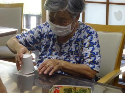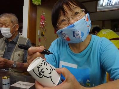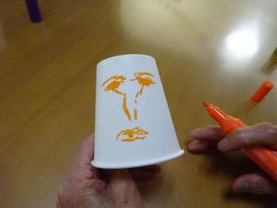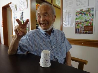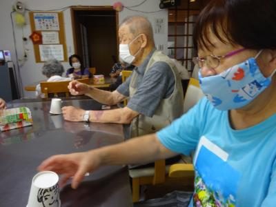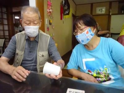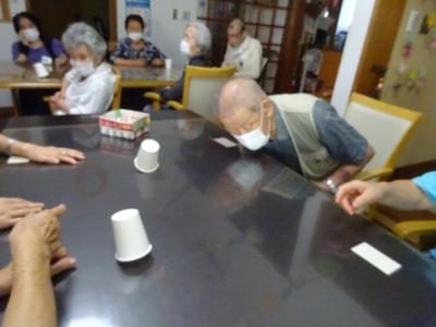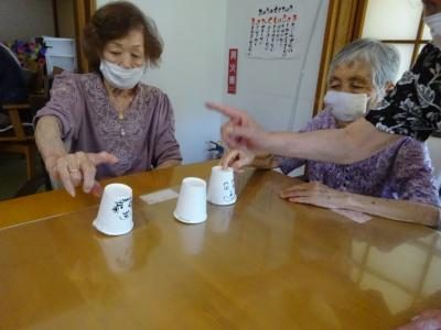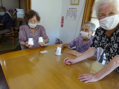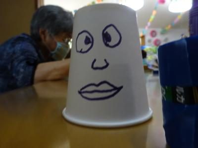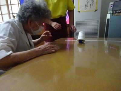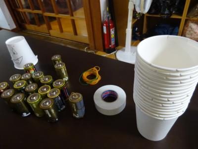 テーブルの上に置いて手を放すと紙コップが前進しまーす