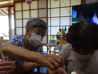 セラバンドを使った曲げ伸ばし運動もバッチリです