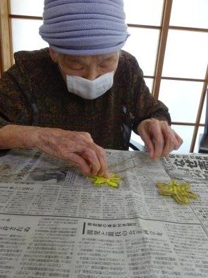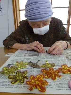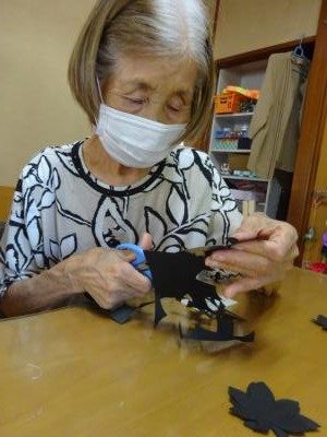 以前のレクで切り作業をした もみじ&イチョウを使ってひらめき