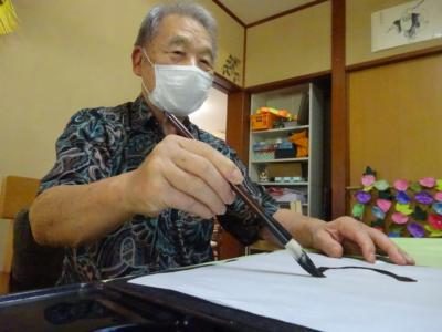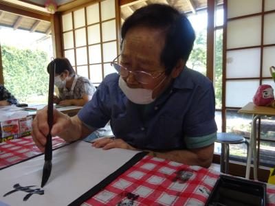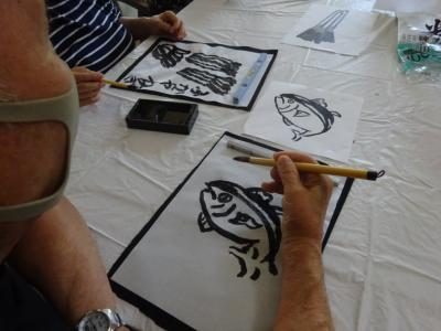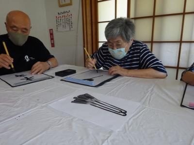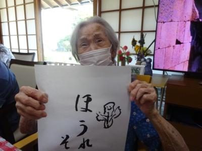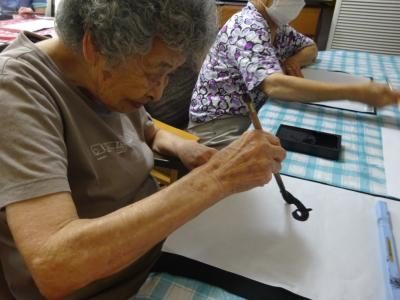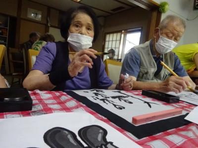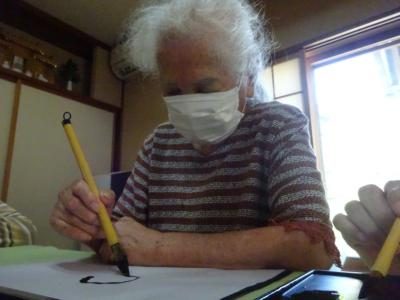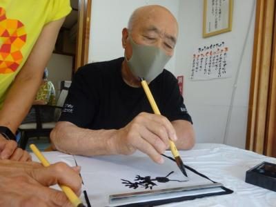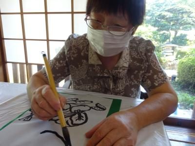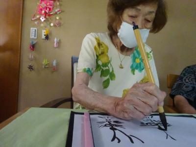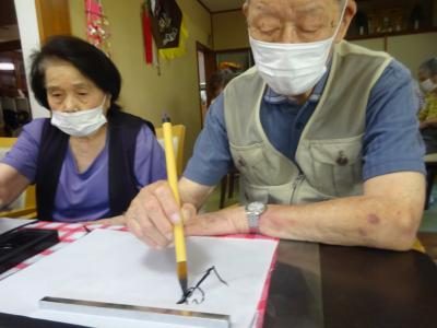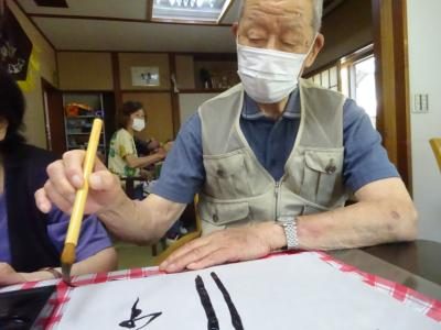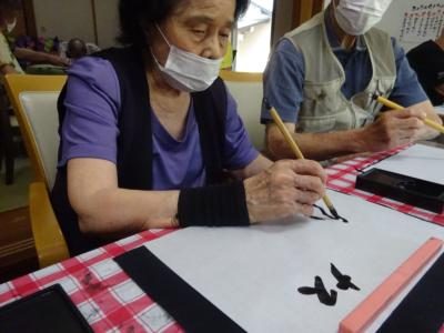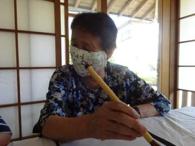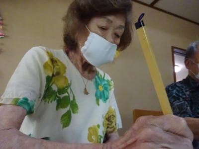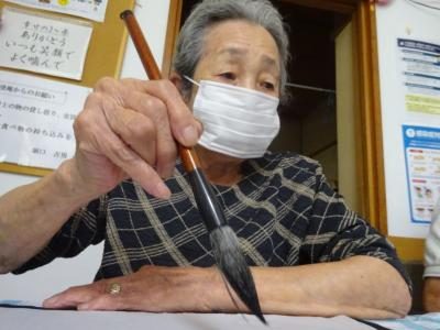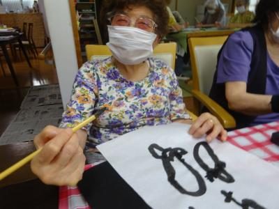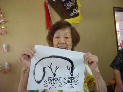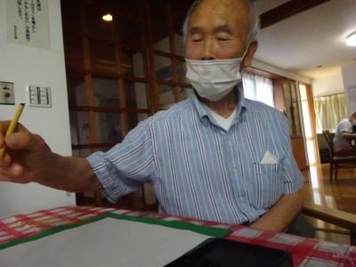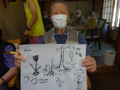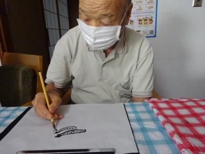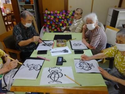 今日のレクリエーションは筆を使って遊んでみましょうるんるん (音符)