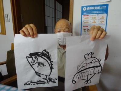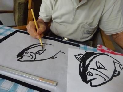 スタッフのお願いで絵の上手なお父様に「マグロ」を書いて頂きましたるんるん (音符)