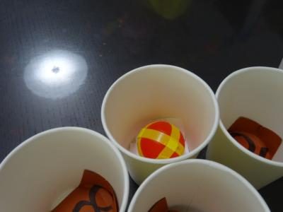 全員が揃って、紙コップをゲットできたところで・・・うれしい顔指でOK