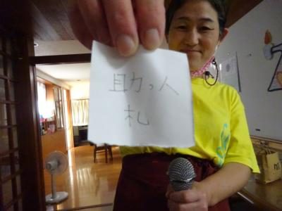 お玉を持って、一発ギャグdouble exclamationdouble exclamation