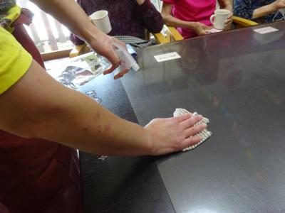 テーブルも除菌1日に何度も、しつこい位に行っています