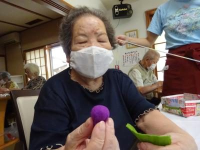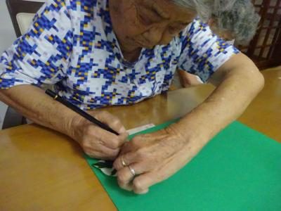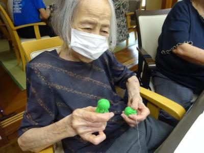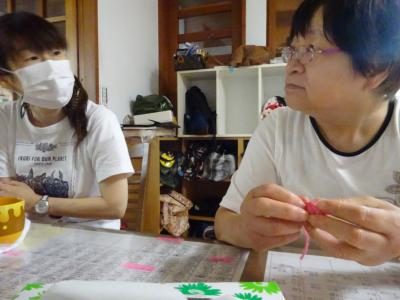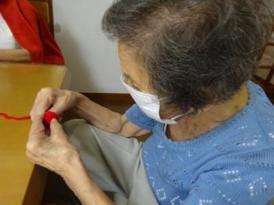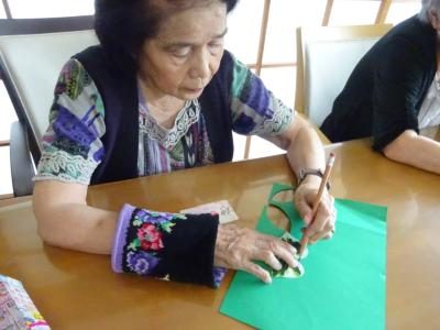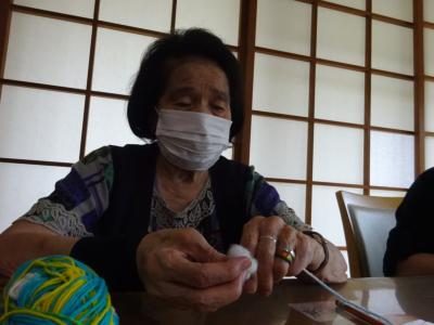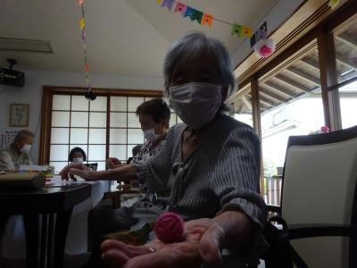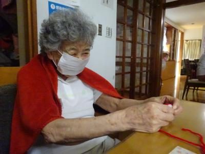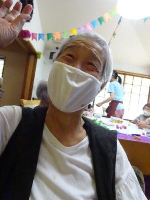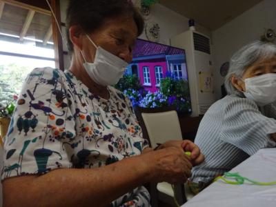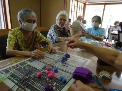 昼休みの時間、スタッフと一緒にレクリエーションの準備中