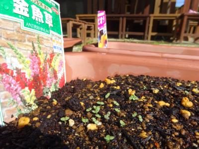 以前、皆様で植えた金魚草やネモフィラの芽が出て
