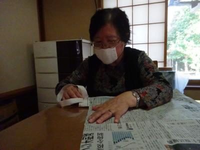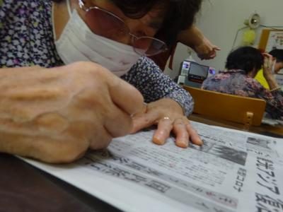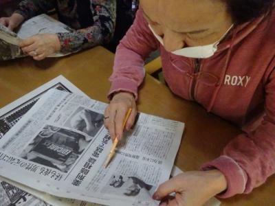 まずは、一枚の新聞の中からご自身の名前探して頂きました
