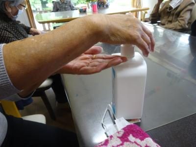 朝、手洗いうがいをした後は手指消毒を欠かさず行っております