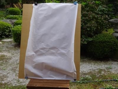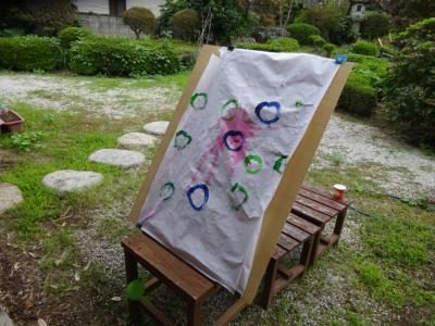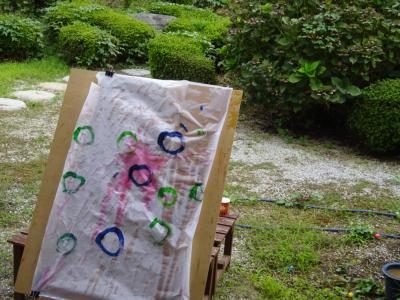 投げて頂く水風船の中には色付きの水が入っているので、風船が割れ、和紙に色づくことでピカソの絵の様に芸術的な作品を完成させようと思っているのです