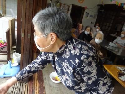 水風船を和紙に投げます