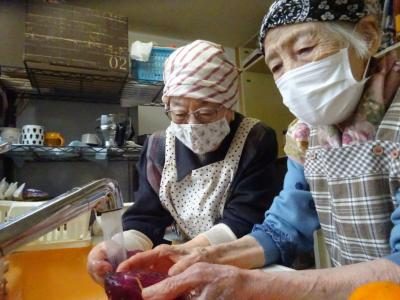 サツマイモも、きれいに洗ってお供えする準備をしましょう