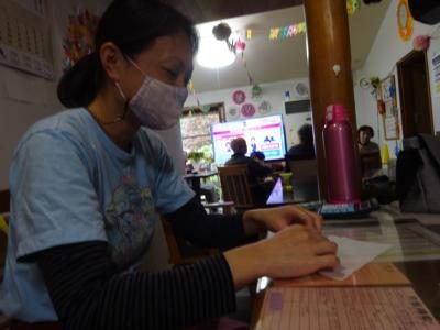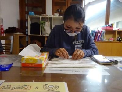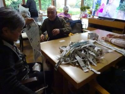 皆様には、新聞紙を細く切って頂くお手伝いしていただきました