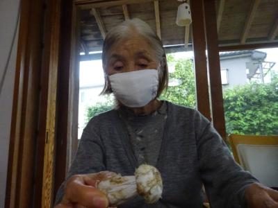松茸を手に取ったお母様(・・?