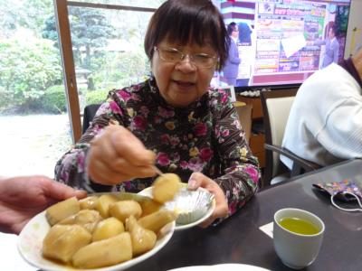 お昼休みにご希望の多かった「里芋の煮っ転がし」の下ごしらえをおかあさんといっしょ