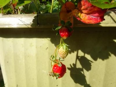 お庭の片隅には、こんなに可愛い【いちご】🍓もなりました!