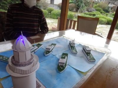 午後のレクレーションでは、「灯台の日」に因み皆様と灯台を作りました(*^^*)