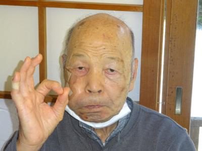表情筋を鍛える体操ではお父さん、ポーズもとってくださいました
