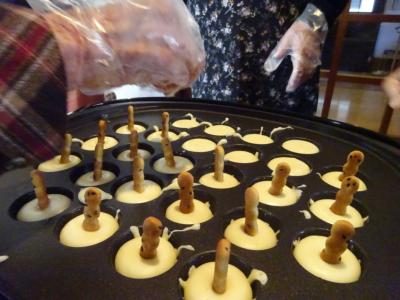 タコ焼き器で作る、ホットケーキきのこ