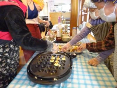 混ぜ終わったら、たこ焼き器に流し込んでいきます