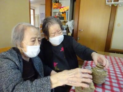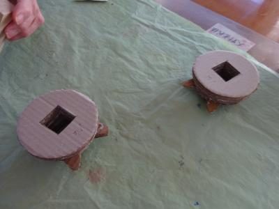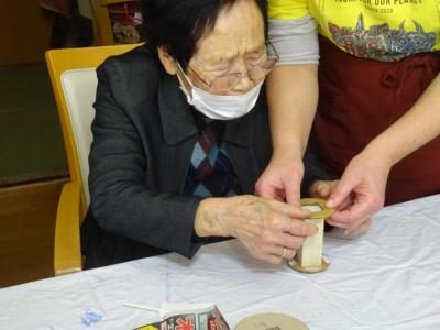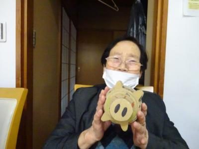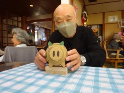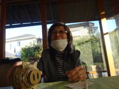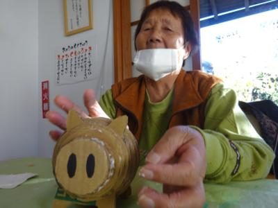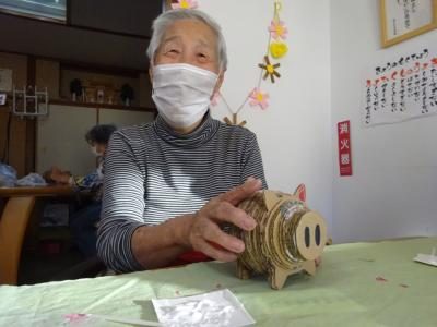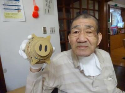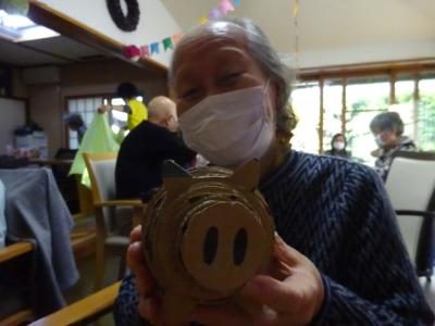 それでは、本日のレクリエーションは「リサイクル」の日という事で「段ボール」を使って「豚の貯金箱」を作りました