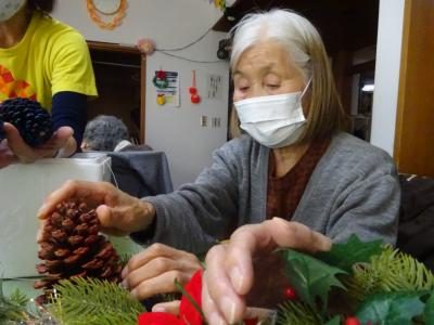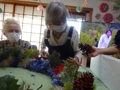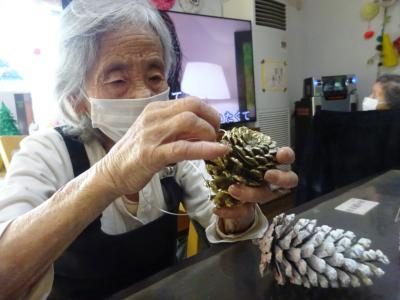 こちらは、松ぼっくりを取り付けて頂く皆様・・・