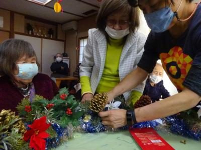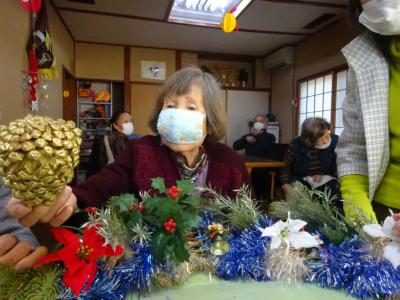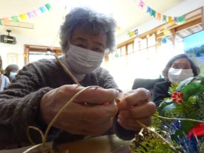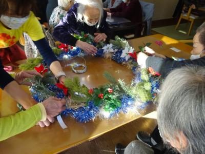 前回皆様に作っていただいていた、大きなリースの飾りつけをしていきましょうヽ(^。^)ノ