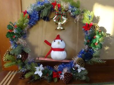大きな飾りとブランコに乗った雪だるまを取り付けましょうヽ(^。^)ノ