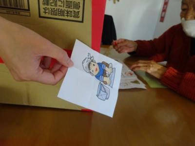 この箱の中には、皆様と同じ絵が入っており、それを引いていただきます