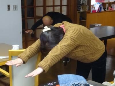 朝は寒くて身体が縮まっているのでストレッチをしながらゆっくりと伸ばしていきましょう