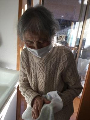 お母さん早速タオルを使ってみたくて、洗面所へ