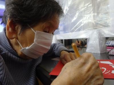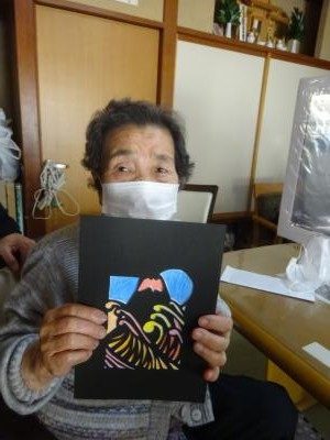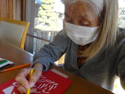 「真っ赤に燃えた~太陽だから~」と唄を歌われながらの色塗りを楽しまれていらしゃいましたわーい (嬉しい顔)