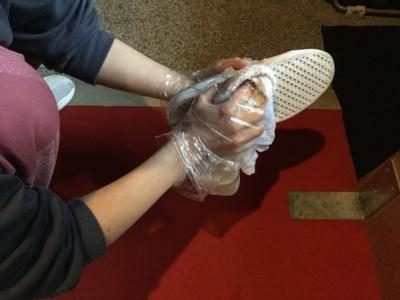 皆様が帰られた後には、今日の方と明日の方の靴の裏を消毒しております