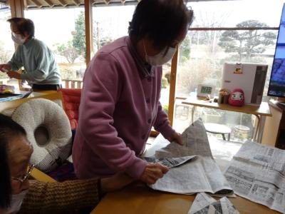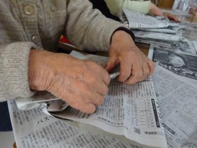 1グループの方にはゴミ箱の袋が無くなってしまったので作っていただきました
