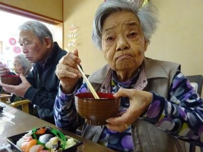 美味しいお寿司とけんちんうどん。美味しそうに食べておられますね😋😊🍣