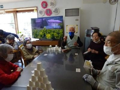 ピンポン玉を使ったゲームを皆様と一緒に楽しく遊んでみましたヽ(^。^)ノ
