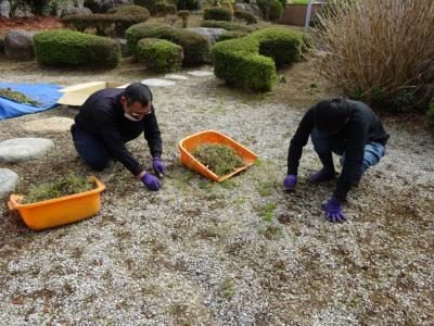 本日は、グングンと伸びてきた雑草をムシって下さっています