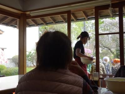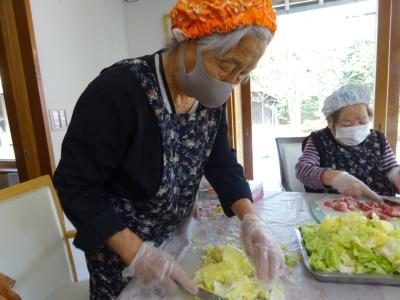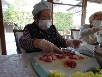 室内では、こちらも手際よく野菜や肉を切ってくださいます