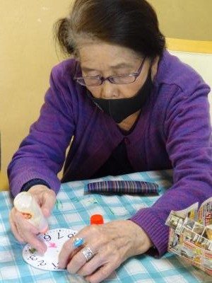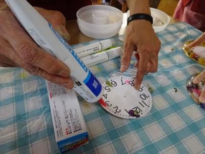 皆様には、時計の文字盤を選んで頂き厚紙にしっかりと貼っていただきました