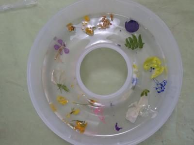 透明のシリコン方にドライフラワーを入れて作った枠です