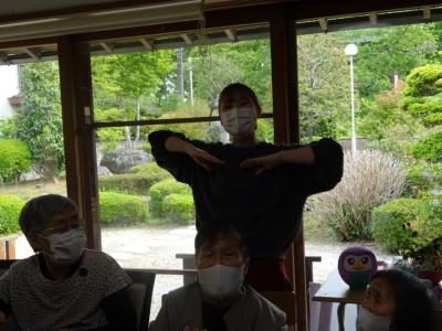 朝は元気いっぱいに体操からスタートですうれしい顔手 (パー)