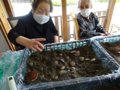 レクレーションでは、「潮干狩り」のテレビの映像を見ていて、皆様にもそんな気分を体験して頂きたく