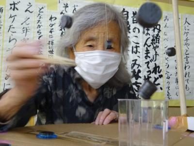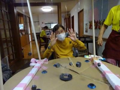 皆様苦戦する中上手にカップの中へいれてくださいました