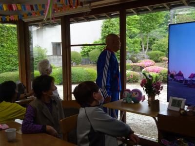 また、体操では立って行う方、座って行う方それぞれで、その方が無理のないようにスタッフの見守りの中行なわれております