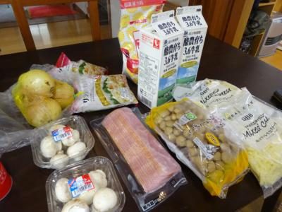 牛乳や炒めたキノコたちも入れ・・・