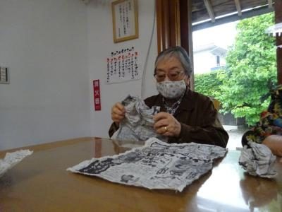 丸い球と・・・そのまま広げた新聞紙(?_?)