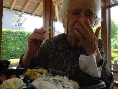 目を閉じ、味わいながら食べていらっしゃるお母様