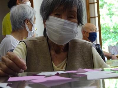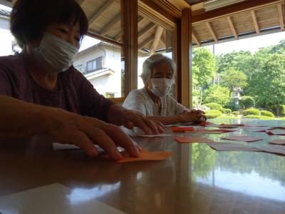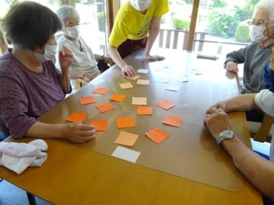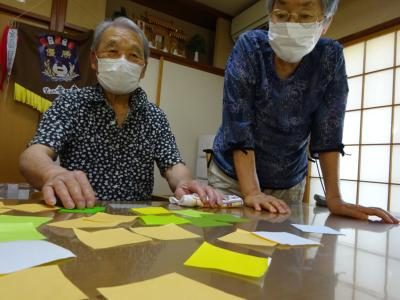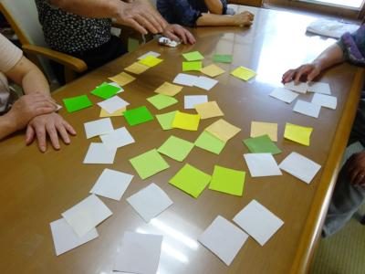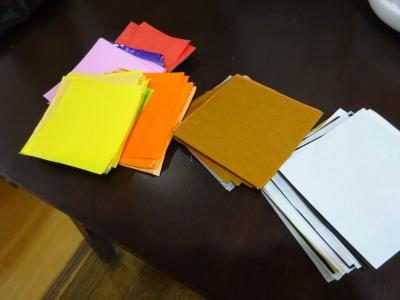 まず、折り紙の色付きのチームと白色のチームに分かれます