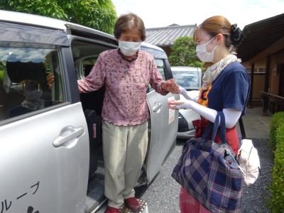スタッフが一人一人の利用者様に付き添い、安全に乗降できるよう手を添えます