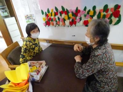 いつも、軽く体操をして身体をほぐしてからのレクリエーションとなるのですが、今日は初めての試み(^ー^* )フフ♪