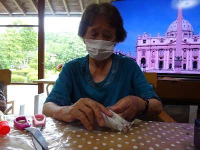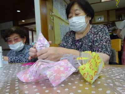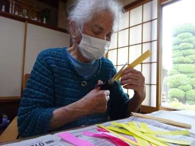 笹に飾る飾りを色々と作って頂きます(*^▽^*)ひらめき